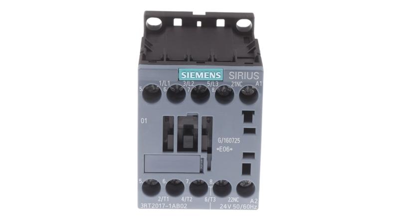 Ensure your industrial automation equipment operates safely with this contactor from Siemens. It has a power rating of 5.5kW and a contact voltage rating of 400V AC, so it's compatible with heavy loads. There are labelled contacts on the front and integrated mounting holes and DIN rail clips on the rear to keep installation quick and simple. A mechanical lifespan of 30,000,000 operating cycles means you can be sure of long-lasting performance. This is a suitable choice for three-phase applications that switch on and off frequently, and you'll commonly find it used with pumps, fans and motors on assembly lines._x000D_