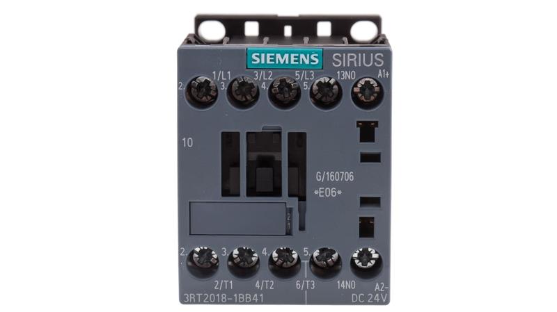 Siemens Innovation 3-Pole Contactor, 16A, 24V DC - SIRIUS Series - 3RT2018-1BB41_x000D_