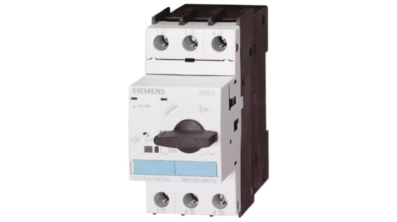 Circuit Breakers 3 Pole - 3RV10 & 3RV13 Range_x000D_ Siemens 3RV10 and 3RV13 moulded case circuit breakers are compact, current limiting motor starter protectors which can be used in motor feeders for special voltages of 440V, 480V, 550V and 690V. They are used for switching and protecting induction motors and other loads with rated currents up to 800A._x000D_ For motor protection the overload and short-circuit releases are designed for optimized protection and direct starting of induction squirrel cage motors. The motor starter protectors have an electronic release which not only provides short circuit and overload protection but is also sensitive to phase failure and phase unbalance and offers protection in the event of rotor blockage._x000D_ For starter combinations these moulded case motor starter protectors are used for short circuit protection in combinations of circuit breaker, motor contactor and overload relay. They are equipped with a purely magnetic release (up to 32A) or a electronic release (100A to 800A)._x000D_ High short circuit breaking capacity in the feeder_x000D_ Optimum usability in load feeders for the special voltages 440V, 480V, 550V and 690V_x000D_ Compact design_x000D_ The releases are available both in purely magnetic (up to 32 A) and in solid-state versions (100A to 800A)_x000D_ Note_x000D_ Most of the Sirius 3R components are available with cage clamp connections. For the size S00 products, with rating up to 5.5kW, this includes both power and control circuit connections. For higher rated products cage clamp is available for the control wiring connections such as operating coils and auxiliary contacts._x000D_ Warning_x000D_ This product is in obsolescence mode and is due for discontinuation by the manufacturer. We recommend that you review the alternative highlighted by the manufacturer. Alternatively, refer to the cross reference list in the Technical Reference section which highlights the upgrade path for your current generation of products._x000D_ Siemens SIRIUS Cage Clamp Technology_x000D_ As an alternative to screw connections a large number of Siemens low voltage components are also available with cage clamp connections.,Solid, stranded and finely stranded conductors, with or without end sleeves, can be connected, where two conductors can be clamped independent of one another at each terminal.,Inserting a flat bladed screwdriver opens the terminal; the conductor is then introduced and securely clamped following the removal of the screwdriver. The chromium-nickel spring steel of the cage clamp terminal guarantees corrosion resistant contact of the conductors._x000D_ Advantages_x000D_ Time saving: the connection can be made quickly without having to press on end sleeves_x000D_ Reliability: the terminal connection is resistant to shock and vibration_x000D_ Vertical Mounting_x000D_ Reduced maintenance: the cage clamp system means that the checking of screw connections following transportation is unnecessary