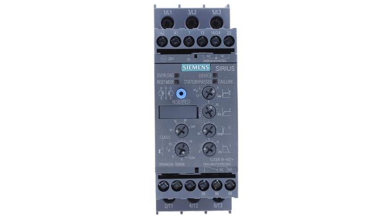 Safely activate your electric motors with this Siemens soft starter. By providing a 24V supply voltage, it minimises the power used to start your motors and supports efficient system activation. The device works with AC and DC motors, which means it's widely compatible with common machines. As it provides up to 5.5kW mechanical power, you can use this unit to switch heavy machinery, making it a versatile start-up option. The module's integrated motor overload protection shuts your hardware down if it detects excessive currents, resulting in minimal risk of damage from faulty equipment._x000D_