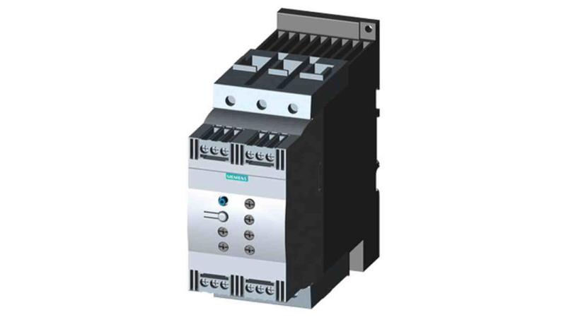 The Siemens SIRIUS range 3RW5 series soft starter with voltage rating 24V ac/dc and current rating 13A.The relay performs various functions such as adjustable current limitation ,DC breaking, slave pointer function._x000D_