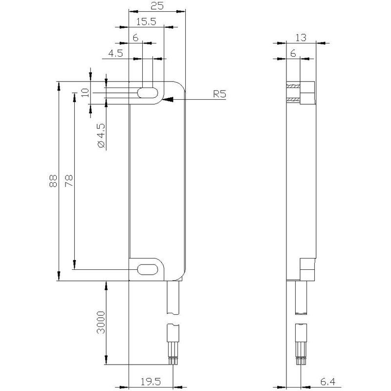 | Dim | (L x W x H) 13 x 88 x 25 mm |