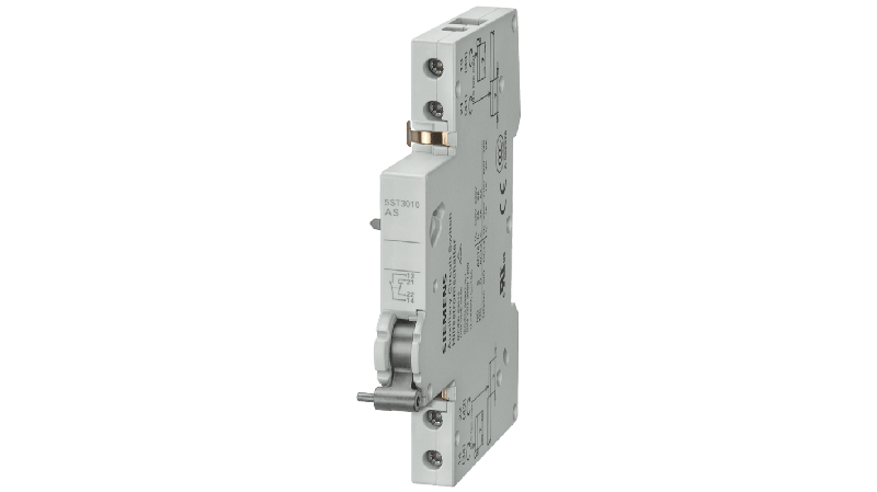 The Siemens SENTRON series auxiliary current switch for miniature circuit breaker 5SL, 5SY, 5SP has 2NO auxiliary contacts. It has width of 9mm, height of 110mm and depth of 70mm._x000D_