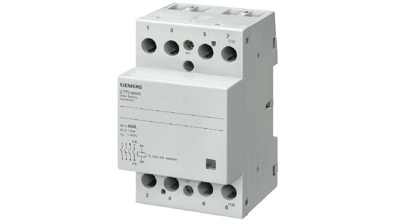 The Siemens 5TT5853-0 is a INSTA contactor with 4 NC contacts for 230 V AC, 400V and 63A circuits, has a control voltage of 230 V AC for high capacitive loads._x000D_