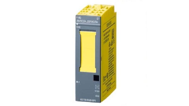 The Siemens SIPLUS ET 200SP F-RQ DC 24V/24-230V AC/5A is a relay output module that has 20 mm overall width, 1 relay output (2 NO) summation output current 5 A, load voltage 24 V DC and 24 ... 230 V AC, can be used up to PL e (ISO 13849-1: 2008)/ SIL 3 (IEC 61508: 2010) if controlled by F-DQ_x000D_