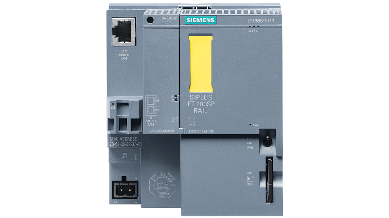 The Siemens SIPLUS ET 200SP CPU 1512SP F-1 PN is a central processing unit with work memory 300 KB for program and 1 MB for data, 1st interface, PROFINET IRT with 3-port switch and 48 ns bit performance._x000D_