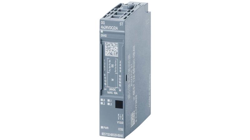 The Siemens SIMATIC ET 200SP is a digital output module, DQ 4x 24VDC/2A Standard, suitable for BU type A0, Colour code CC02, Module diagnostics._x000D_