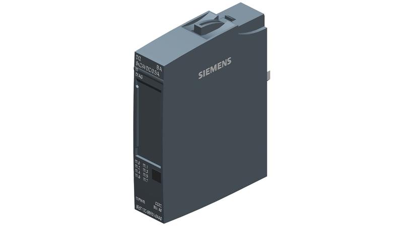 The Siemens SIMATIC ET 200SP is a digital output module, DQ 8x 24V DC/0,5A Basic, Source output (PNP,P-switching) Packing unit: 1 piece, fits to BU-type A0, Colour Code CC02, substitute value output, module diagnostics for supply voltage._x000D_