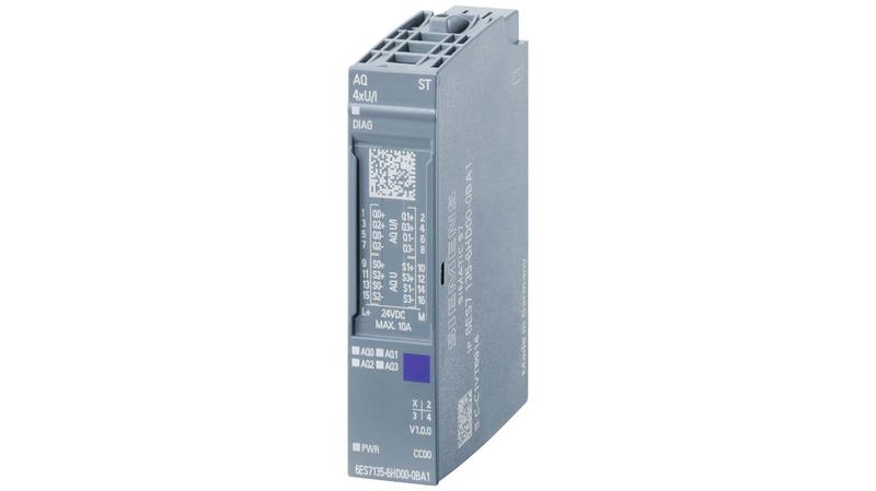 The Siemens SIMATIC ET 200SP is an analog output module, AQ 4XU/I Standard, suitable for BU type A0, A1, Colour code CC00, module diagnostics._x000D_