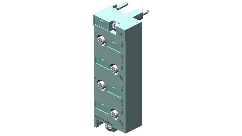 The Siemens Sematic DP connection module for digital electronic modules ET 200 PRO, 4xM12, plastic version. It has dimensions of 45mm x 130mm x 39mm._x000D_