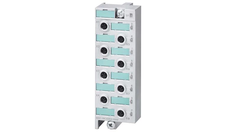 The Siemens Sematic DP connection module for digital electronic modules ET 200 PRO, 8xM8. It has dimensions of 45mm x 130mm x 39mm._x000D_