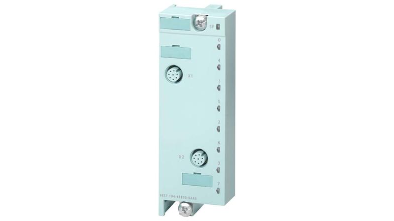 The Siemens Sematic DP connection module for digital electronic modules ET 200 PRO, 2xM12, 8-pole. It has dimensions of 45mm x 130mm x 39mm._x000D_