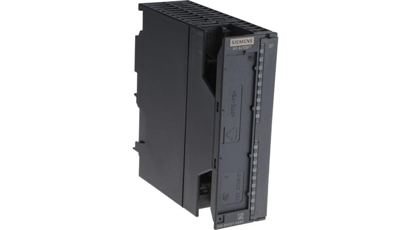 Upgrade your S7-300 logic-controlled system by adding this analogue output module from Siemens. As it has a 12-bit resolution and an overage of ±10V and ±20mA, it's suitable for programming with variable-control devices. Four integrated outputs mean you can connect and control multiple functions. Use it with solenoid valves, level indicators and motor starters in industrial processing and material handling applications. The module has a compact width of 40mm and depth of 120mm, making it easier to fit alongside your CPU. It's suitable for installation and removal when the backplane is active, so there's no need to shut your systems down to upgrade them._x000D_