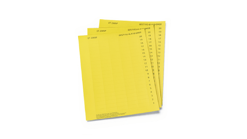 The Siemens SIMATIC labelling sheets design for 35 mm wide S7-1500 modules. This labelling sheets comes in yellow colour and made of foil, perforated material, suitable for printing using commercially available laser printers_x000D_