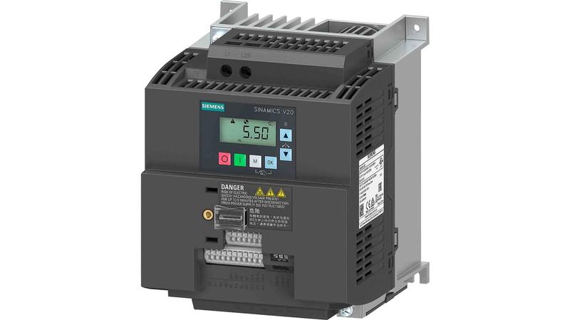The Siemens 6SL3 series SINAMICS V20 basic converter with 2.2 KW rated power, integrated with external fan cooling._x000D_