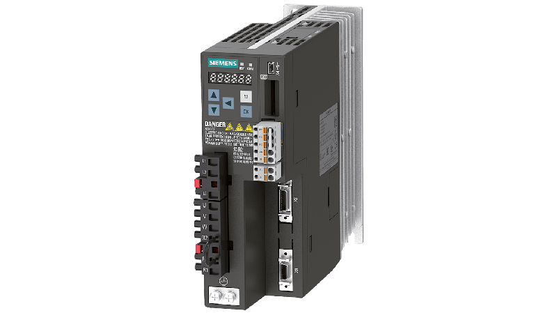 The Siemens 6SL3 series SINAMICS V90 servo drive, with 0.4 KW rated power integrated with natural convection cooling._x000D_