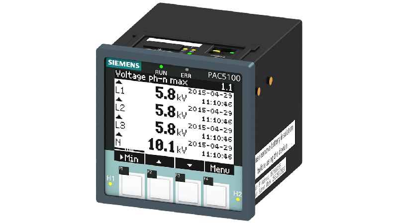 Use this multi-function energy meter from Siemens to monitor voltage, power and current levels in your electrical systems. It's a measurement device designed for 3-phase circuits and it gives precise readings on a clear LCD screen. A white background and backlight mean it's easy to gather information from the display, even in low light. This device detects and assesses both AC and DC supply voltages, so it's a versatile tool. As it measures up to 5A of current, it's a good fit for low-voltage to medium-voltage applications. Tools like this are used anywhere from industrial production equipment panels to power transmission stations._x000D_
