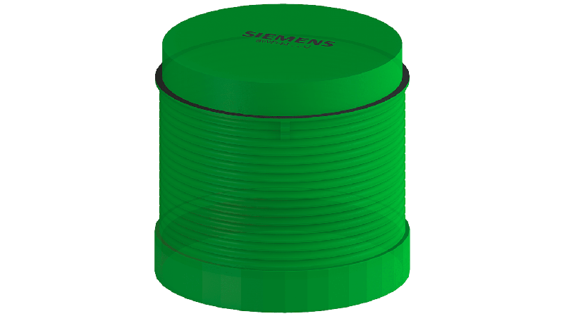 The Siemens SIRIUS green flashlight element has diameter 70 mm. It has integrated flashing light electronics hence additional filament lamp or LED is not required. It operates on 24 V AC/DC._x000D_