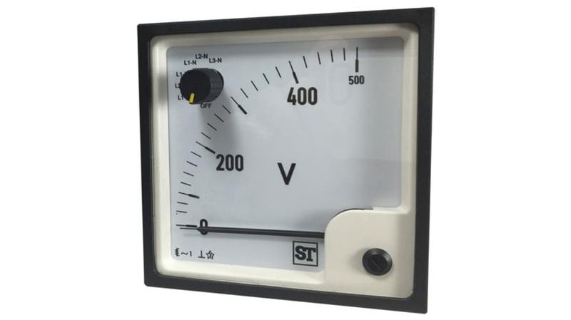 Selector switch moving iron panel meters are housed in moulded polycarbonate cases and are designed for the measurement of AC currents. The frequency range of the current ranges from 15-400 Hz and voltages in the frequency range from 15-100 Hz._x000D_