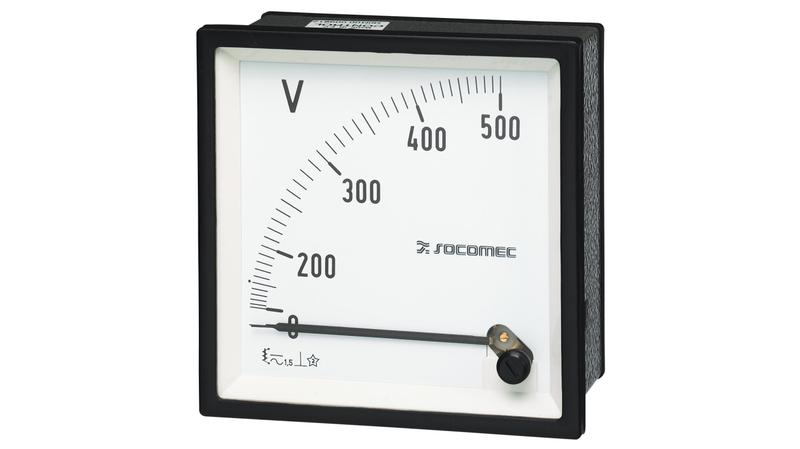 The Socomec switchable analogue voltmeter for three-phase networks. It has 6 position switch._x000D_