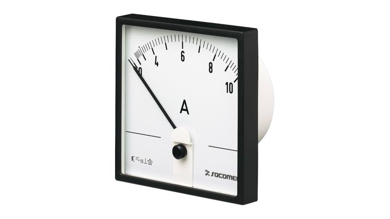The Socomec ferromagnetic ammeters measure the alternating current of any electrical circuit. They are embedded in the front panel of cabinets, enclosures or other equipment. The maximum current value is 150 A._x000D_