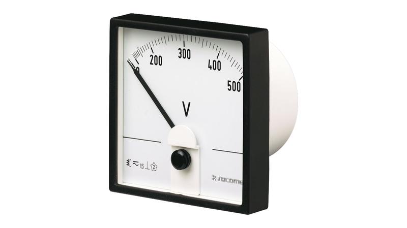 The Socomec ferromagnetic voltmeters measure the AC voltage of any electrical circuit. They are embedded in the front panel of cabinets, enclosures or other equipment. The maximum value voltage measured is 500 V._x000D_