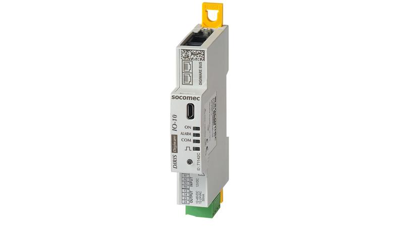 The Socomec DIRIS Digiware IO-10 modules have 4 digital inputs and 2 digital outputs. The 4 digital inputs can be used to monitor the status of third-party devices or to collect pulses from multi-fluid meters. The 2 digital outputs allow the remote control of third-party equipment signal._x000D_