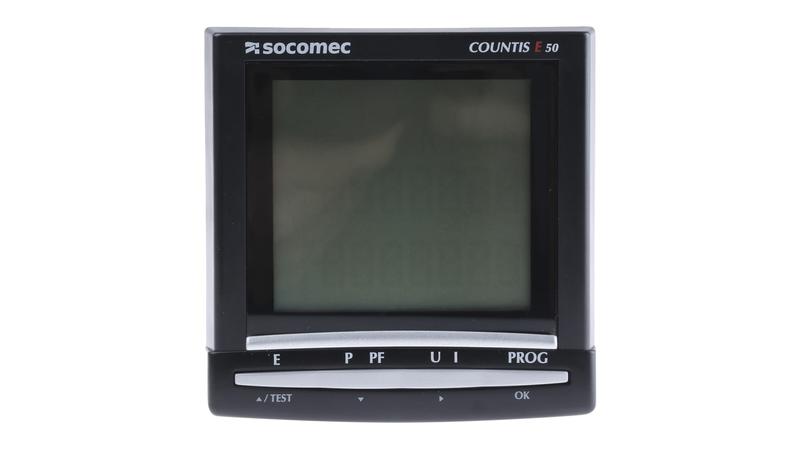 The Socomec Countis E50 series 3-phase digital power meter allows measuring electrical parameters such as voltage, current, active power, reactive power, apparent power and power factor with a measurement range of 86VAC to 520V, 3mA to 6A. This panel mount device is a totalising meter is used for direct reading of the power consumed, using a pulse output. Two partial meters with a reset allow the energy to be metered over a specific period. It allows direct reading in kWh and pulse output. The CT ratio can be configured by the user via the keypad and the display screen. It operates on a supply voltage ranging between 110VAC and 400VAC. This meter has a cut-out height of 92mm, cut-out width of 92mm and depth of 80mm._x000D_