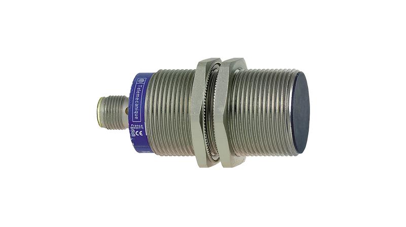 The Schneider Electric XS series inductive proximity sensor is solely for the detection of metal objects. It basically comprises an oscillator whose windings constitute the sensing face. An alternating magnetic field is generated in front of these windings. When a metal object is placed within the magnetic field generated by the sensor, the resulting currents induced form an additional load and the oscillations cease. This causes the output driver to operate and, depending on the sensor type, a normally open (NO) or normally closed (NC) output signal is produced._x000D_