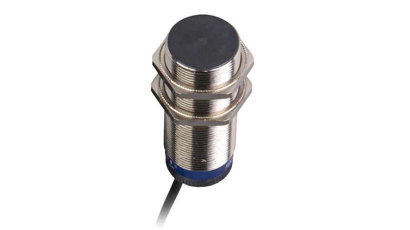 The Schneider Electric XS series proximity sensor for rotation monitoring, slip detection, shaft overload detection available in cylindrical form. These self-contained rotation speed monitoring sensors have the special feature of incorporating, in the same case, the pulse sensing and processing electronics as well as the output switching amplifier that are required to establish an integrated rotation monitoring device. Sensors XSAV are particularly suitable for the detection of under speed, when the speed of the moving part Fc falls below a preset threshold Fr, this causes the output circuit of the sensor to switch off._x000D_