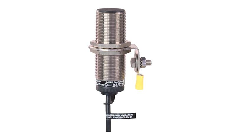The Schneider Electric XS series proximity sensor for rotation monitoring, slip detection, shaft overload detection available in cylindrical form. These self-contained rotation speed monitoring sensors have the special feature of incorporating, in the same case, the pulse sensing and processing electronics as well as the output switching amplifier that are required to establish an integrated rotation monitoring device. Sensors XSAV are particularly suitable for the detection of under speed, when the speed of the moving part Fc falls below a preset threshold Fr, this causes the output circuit of the sensor to switch off._x000D_