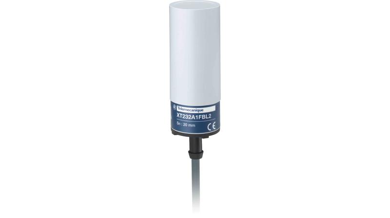 The Schneider Electric capacitive sensor. The XT offer is a range of capacitive proximity sensors, dedicated to the detection of insulated or conductive materials. These sensors are suitable for the detection of any object irrespective of material or conductivity. For example, metals, minerals, wood, plastic, glass, cardboard, fluids, etc. It features a plastic plain case, diameter 32mm and a 2m long pre-cabled connection. Output state indication by a yellow LED._x000D_