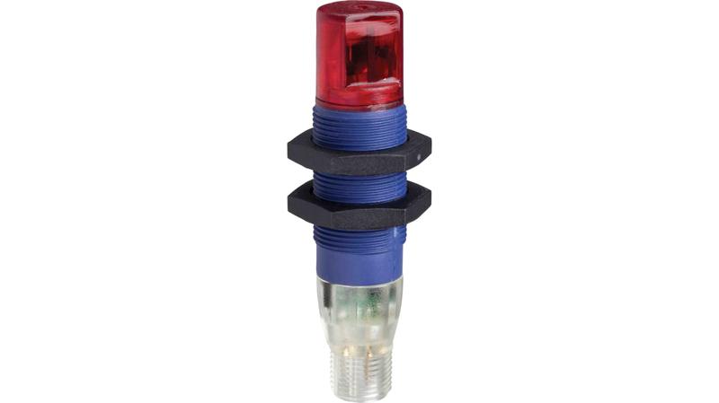 The Schneider Electric photo-electric sensor is part of the XU range, single mode function. It is a design 18, metal transmitter with an M12 connector. Three-wire DC, solid-state output._x000D_