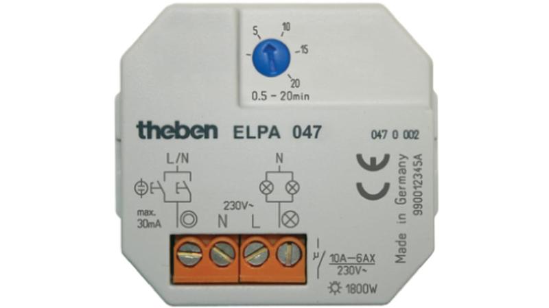 The ELPA 041 and 047 are staircase timeswitches from Theben / Timeguard with a timing range between 5 → 20 minutes for a wide variety of application uses. Main features of these two devices from Theben / Timeguard include up to 10 A switching capacity, a high-temperature resistant self-extinguishing thermoplastic enclosure with a protection class rating of IP20 and a low stand by power consumption of 0.1W._x000D_