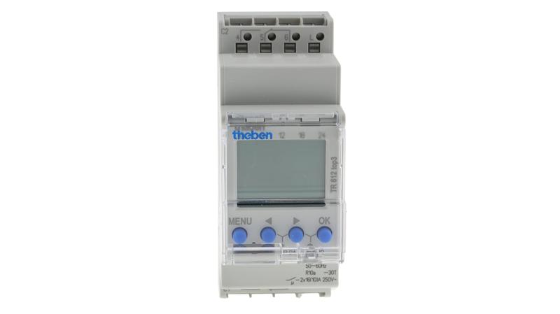 The Theben digital time switch is a dual-channel, DIN rail, double pole double throw (DPDT) device. It is an astronomical time switch with the daily program and 56 memory locations. It has a supply voltage rating of 230VAC. The housing material of this switch is highly temperature resistant made with self-extinguishing thermoplastic. This device enables safe transfer via optional Bluetooth low energy OBELISK top3. It is useful for industrial applications._x000D_