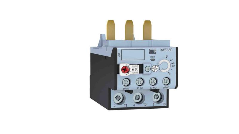 The WEG RW67 thermal overload relay, 57A. It is available in the three-pole and two-pole version. It has tripping thermal class 10 and direct coupling to the compact contactor line. It protect load against overheating caused by overload or phase loss._x000D_