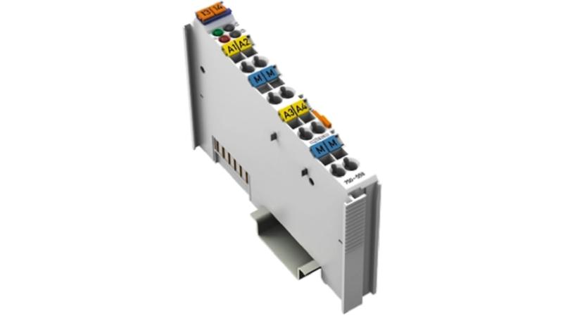 The Wago I/O SYSTEM 750 series PLC I/O module has 4 analogue channels. The analogue output module creates a standardised signal ranging between ±10V, 0V and 10V. The output signal is electrically isolated and will be transmitted with a resolution of 12bits. The system voltage supply is used for the power supply of the module. The output channels of this module have one common potential._x000D_