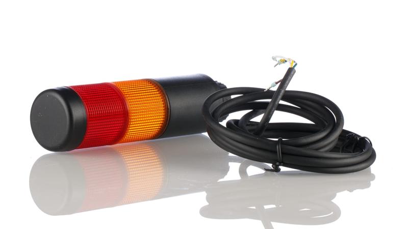 This signal tower from WERMA provides a simple visual alarm solution for industrial equipment. It has two signal colours – red to show the machine has stopped and amber to indicate that it's ready to run. Thanks to its bright light-emitting diode (LED) bulbs, the signals are highly visible from a distance and in most lighting conditions. This component has a polycarbonate (PC) housing, which means it's durable and resistant to impact. It also has a low current consumption of just 100mA, so it's an energy-efficient choice._x000D_