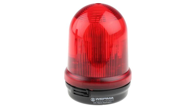 Improve safety in your workplace with this red beacon from WERMA. It uses a xenon bulb to create a bright light that's highly visible from a distance. The ribbed dome and flashing effect maximise the signal's visibility to quickly alert people to a hazard. Thanks to the two fixing holes on the base, the unit is simple to mount on a surface or wall. The lens twists off for quick maintenance, and a bayonet lock keeps it securely in place while it's in use._x000D_
