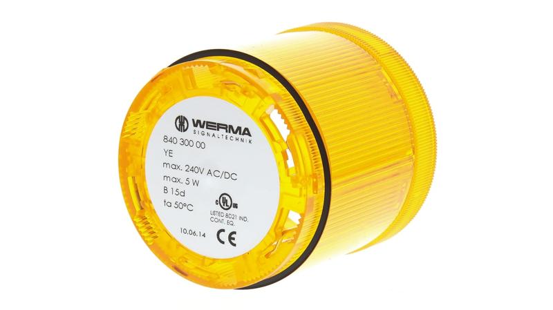 WERMA Steady Yellow Beacon Unit, 12 to 230V AC/DC, 70mm Base Diameter - KombiSIGN 70 Series - 840.300.00_x000D_