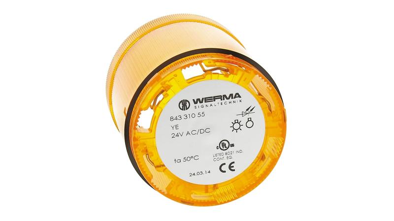 WERMA Flashing Yellow LED Beacon Unit, 24V DC, 65.5mm Height - KombiSIGN 70 Series - 843.310.55_x000D_