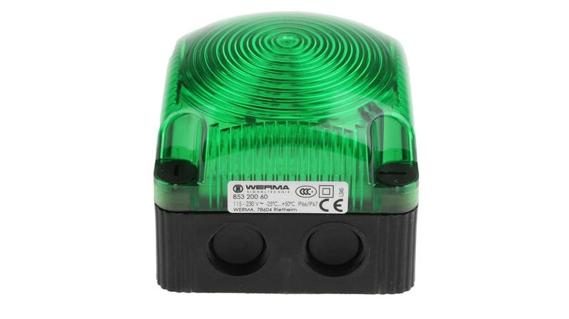 WERMA Green LED Beacon, Surface and Wall Mount, 230V AC - BWM 853 Series - 853.200.60_x000D_