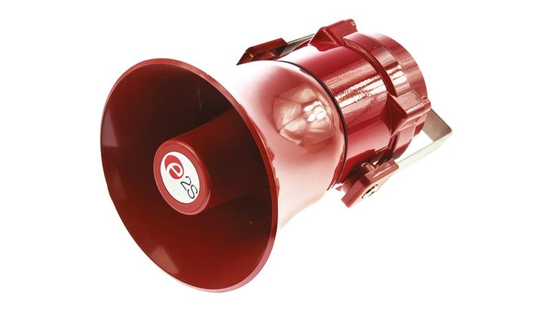 E2S BExS110 series explosion proof very high output horn alarm sounder with output up to 117dB (A) at 1m, suitable for Zone 1, 2, 21 & 22 applications. These devices feature 32 alarm tones options and 3 selectable alarm stages/channels. The BEx explosion proof range is constructed from corrosion proof, marine grade copper free LM6 aluminium with chromate and powder coat finish. The range features stainless steel, ratchet adjustable mounting brackets and has been ingress protection tested to IP66/67._x000D_