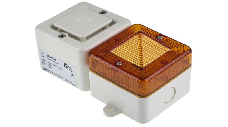 The e2s AC flashy sounder beacon with the amber lens has sound level outputs up to 100dB (A) at 1m. This device provides 10 alarm tones options and 2 remotely selectable stages. The alarm horn and Xenon beacon can be connected from a single power supply for simultaneous operation or from separate supplies for independent operation._x000D_