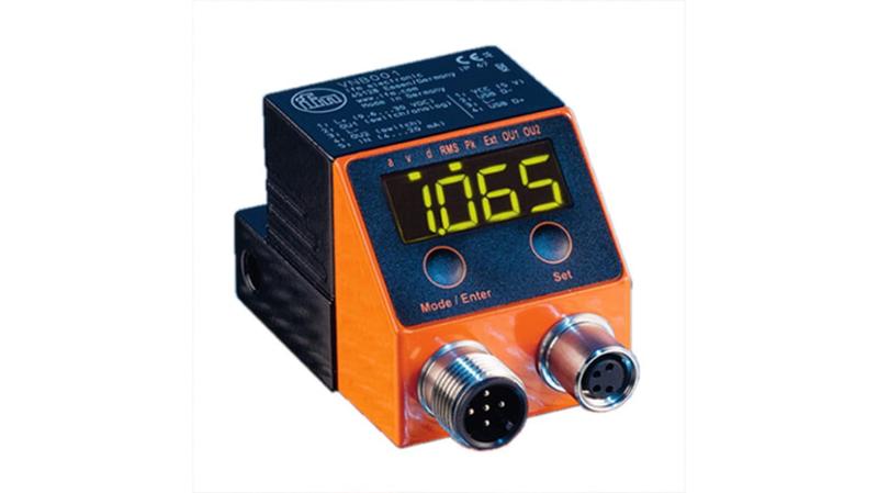 Ifm electronic VN series vibration transmitters for online monitoring of overall vibration of machines and equipment according to ISO 10816. The VN series is distinguished by its simple set-up, requiring no PC software for parameter setting. The sensor measures the average vibration velocity (mm/s or in/s). Measurement value and switchpoint conditions are visualised on the LED display. Critical machine conditions are signalled using either 2 switching outputs or alternatively 1 switching and 1 analogue output._x000D_
